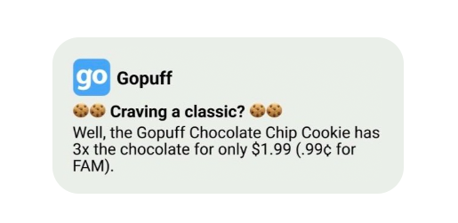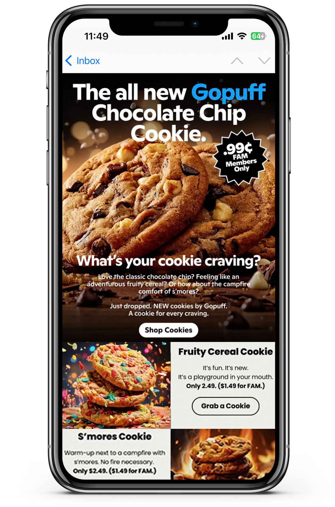 Brief | Notify customers of the new Gopuff Cookie collection.